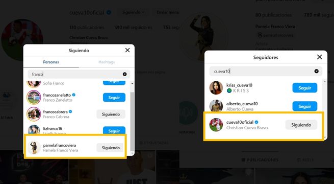 Al parecer, Cueva y Franco han decidido ya no ocultar su cercanía, pues se han empezado a seguir en las redes sociales.