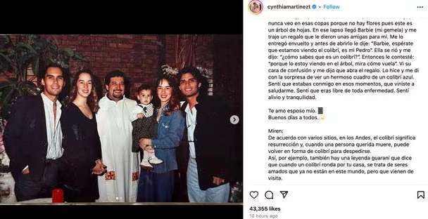 Cynthia Martínez, esposa de Pedro Suárez Vértiz, reveló que vio al cantante materializarse en un colibrí. La empresaria compartió un conmovedor mensaje sobre este peculiar episodio en su vida a través de su cuenta de Instagram.