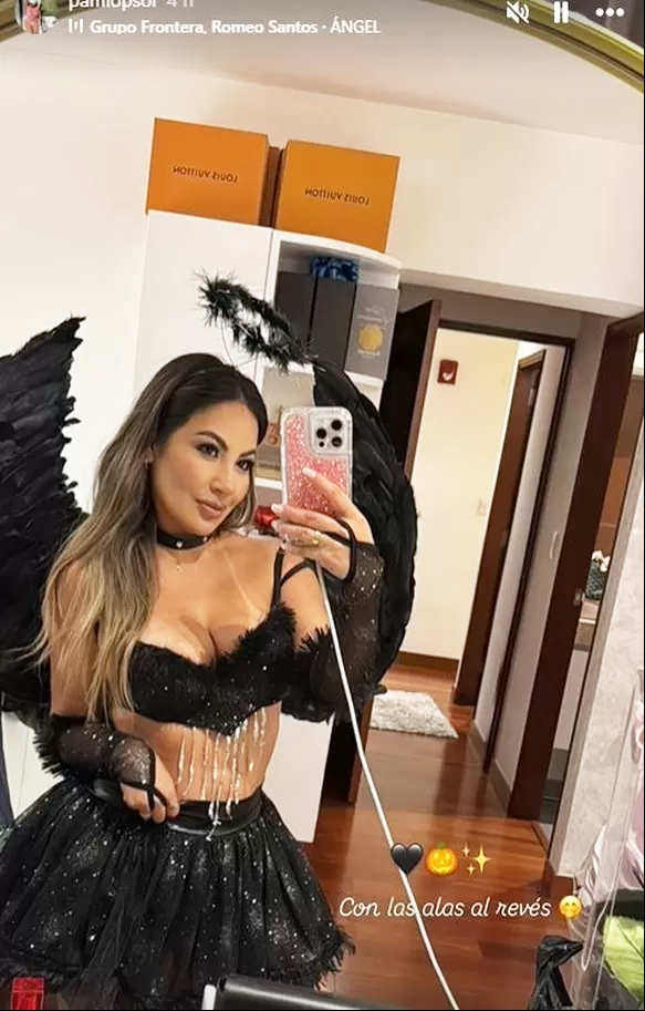 Posteriormente, Pamela López tuvo una salida nocturna junto a su hija mayor y otras amistades. Para la ocasión, se vistió de una angelita negra, luciendo una falda corta, un top y un par de alas de ese color.