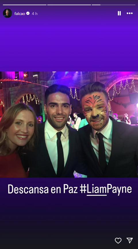 “Descansa en paz, Liam Payne”, escribió Falcao en su cuenta de Instagram en donde subió una historia junto al cantante británico.