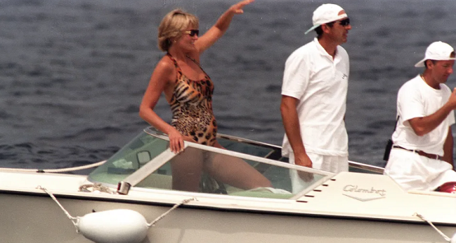 Diana es mostrada usando un traje de baño animal print que desafía las normas reales. La serie replica con precisión el traje que Diana usó en la realidad, marcando su audacia incluso después de su divorcio oficial de Carlos.