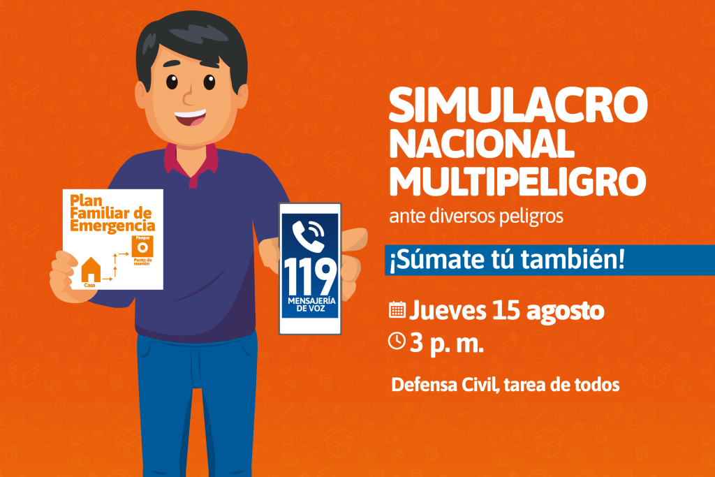 El Segundo Simulacro Nacional Multipeligro de 2024 está programado para este 15 de agosto a las 3:00 p.m.
