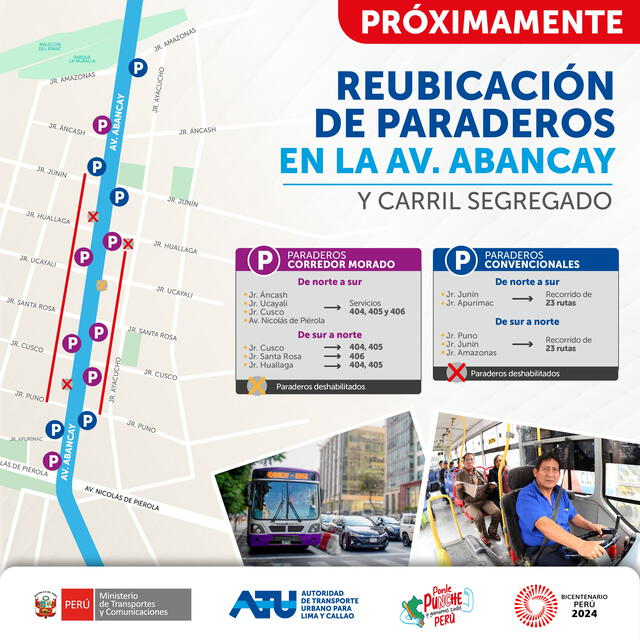 Y es que la ruta de los corredores 404, 405 y 406 tendrán nuevos paraderos, sobre todo en la avenida Abancay, esto con el fin de mejorar el pase de vehículos. Conoce en esta nota de Latina Noticias, cuáles son los cambios.