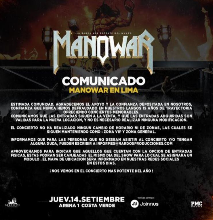 A través de comunicado, la productora anunció que el concierto de la banda estadounidense de heavy metal, tendrá cambio de locación: