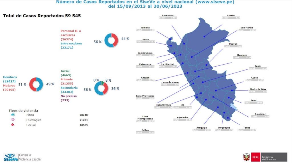 El Ministerio de Educación (Minedu) también dispone de protocolos para abordar el acoso escolar en las instituciones educativas, los cuales tienen un enfoque principalmente orientador; no obstante, deben considerarse criterios de acción. En esa línea, el Decano Nacional del Colegio de Psicólogos del Perú, el Dr. Miguel Vallejos sostuvo a Latina Noticias que el Ejecutivo debió prevenir esta situación, ya que se veía venir este incremento.