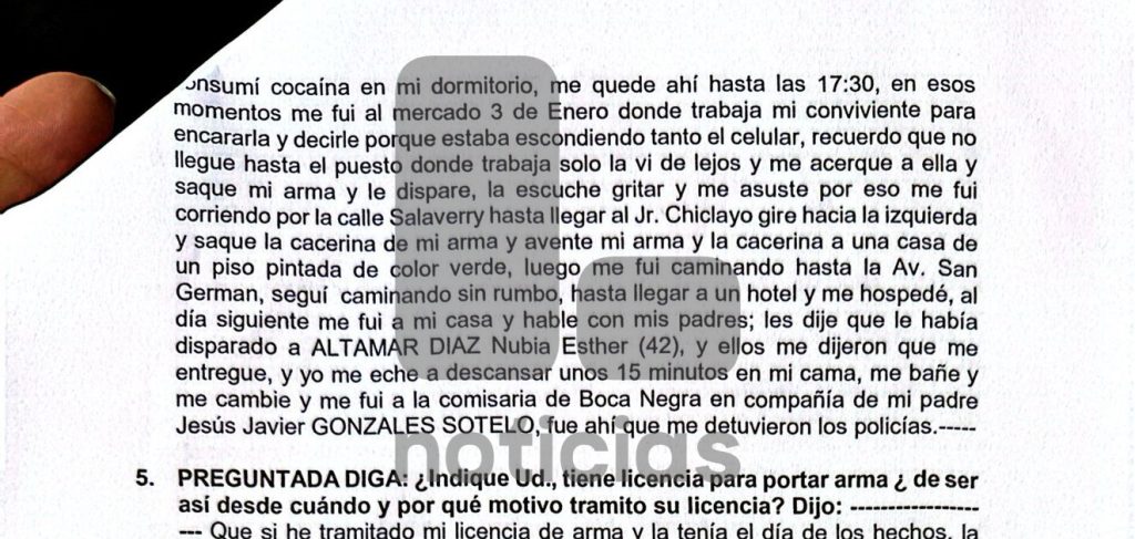 De acuerdo con los documentos, el hombre admitió que esperó a Nubia hasta las 5:30 p.m. para encararla luego de preguntarle el por qué guardaba su celular. Luego de ello, el hombre sacó un arma y le disparó en el pecho.
