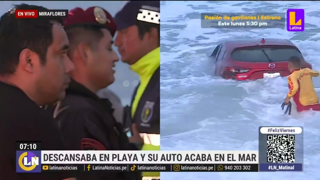 Ante lo ocurrido, diversas autoridades y rescatistas del distrito de Miraflores llegaron a la playa Los Delfines para sacar el auto que poco a poco era arrastrado por el mar.