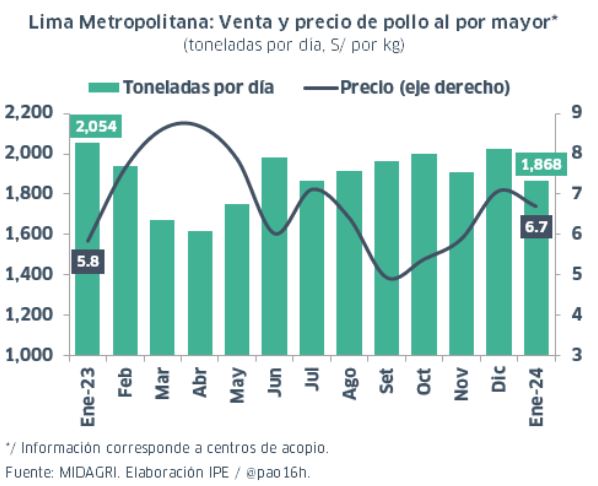 “Con ello, se vendieron 1,868 toneladas de pollo por día en enero (9.1% menos que hace un año)”, se lee en la publicación de IPE.