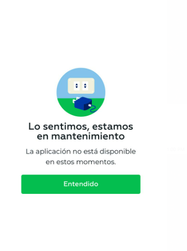 “Lo sentimos, estamos en mantenimiento. La aplicación no está disponible en estos momentos”, es el mensaje que le salía a los clientes cuando intentaban ingresar a la APP.