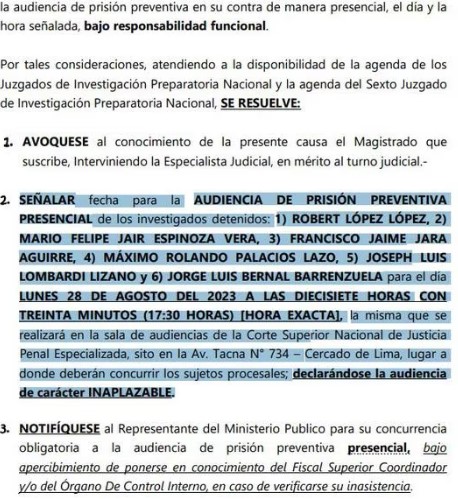 El juez del caso también determinó que Robert López, Máximo Palacios Lazo y Joseph Lombardi Lizano pueden continuar el proceso en libertad, con restricciones y la prohibición de abandonar el país.