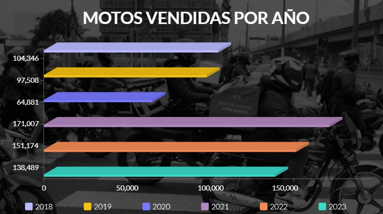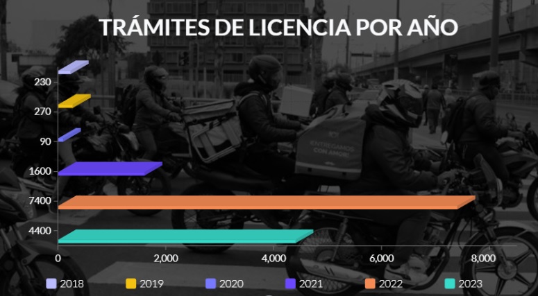 Según la Asociación Automotriz del Perú, hasta julio de este año la venta de motocicletas en Lima ha alcanzado la cifra de 200 unidades diarias; no obstante, Saida Jerí, gerente del centro de evaluaciones del Touring, reveló que se tramitaron 7.400 licencias de moto durante el 2022, mientras que en lo que va de 2023 ya se han procesado 4.400. Esta última cifra significa que, en 210 días, se han tramitado apenas 20.