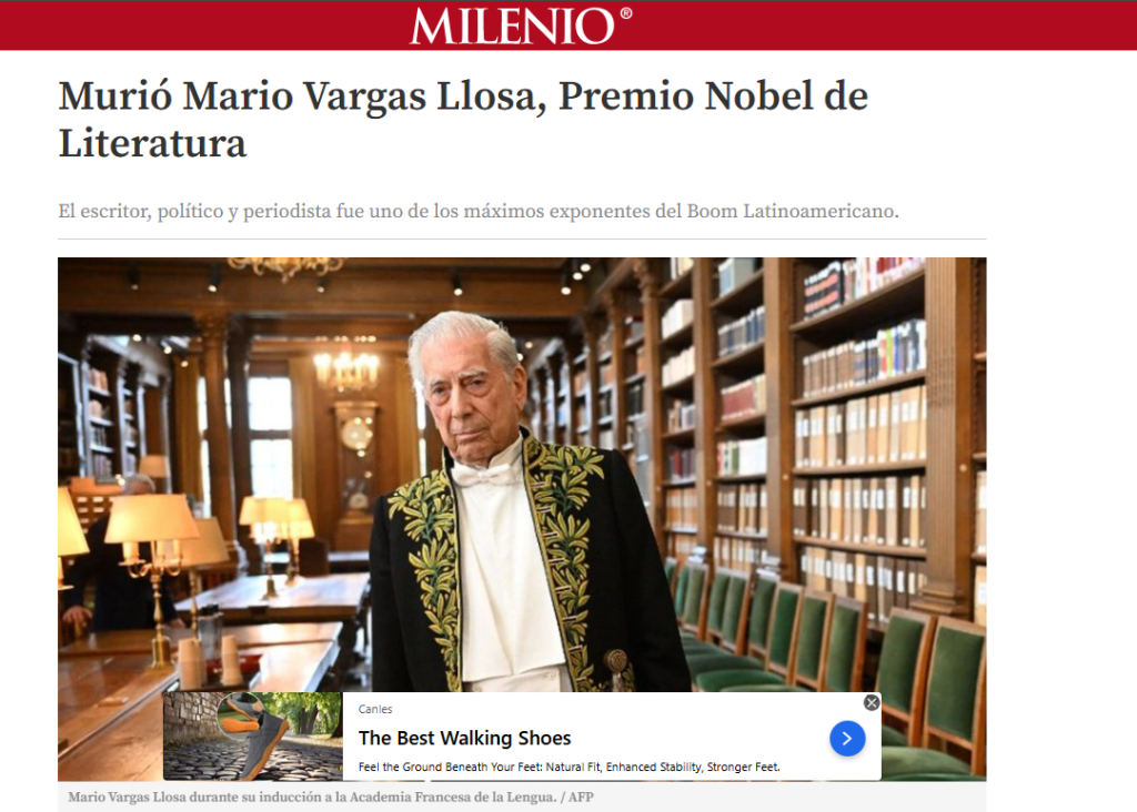 “Murió Marió Vargas Llosa, Premio Novel de Literatura”, informó Milenio.