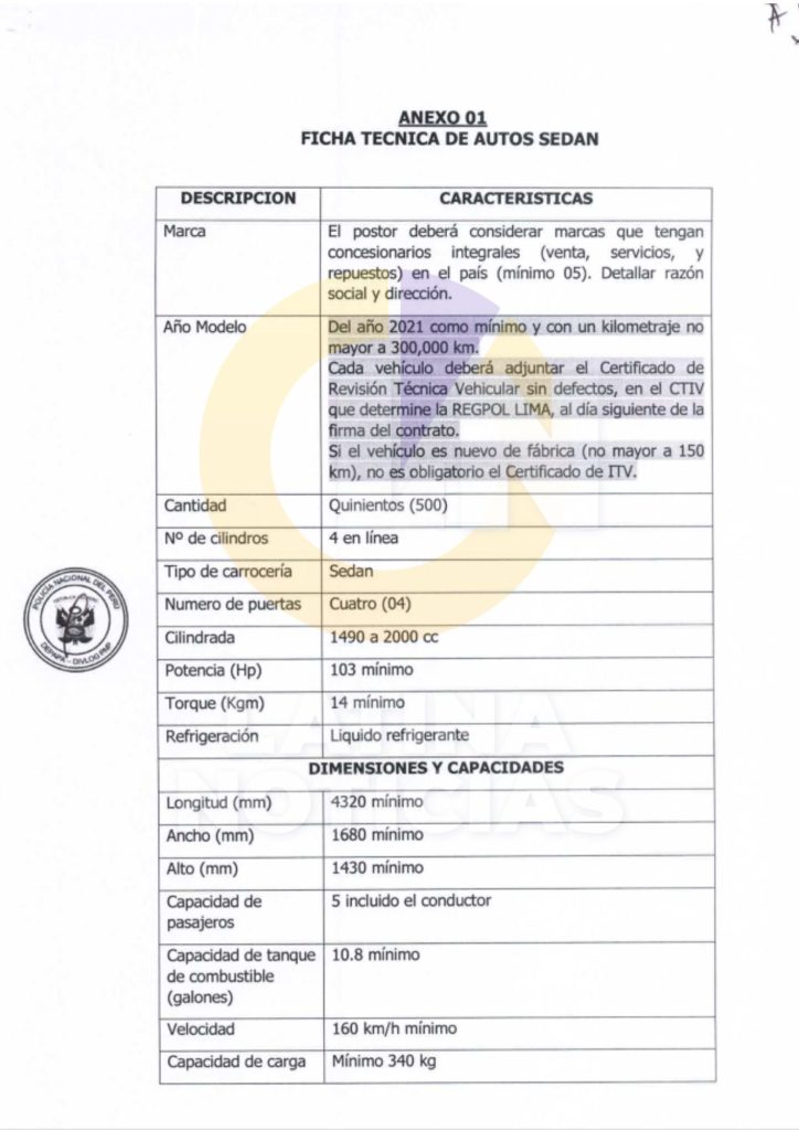 Son dos contrataciones directas. La primera, por vehículos nuevos y la segunda, por vehículos usados. Esta última pedía que la empresa entregue la flota implementada en casi 30 días. Empresas consultadas por Latina Noticias en las últimas semanas indicaron que cumplir con el plazo es imposible, pues tienen que traer la flota por mar y, además, implementar cada uno de los vehículos con los requisitos de la PNP, tales como pegatinas, radios, sirenas y más.