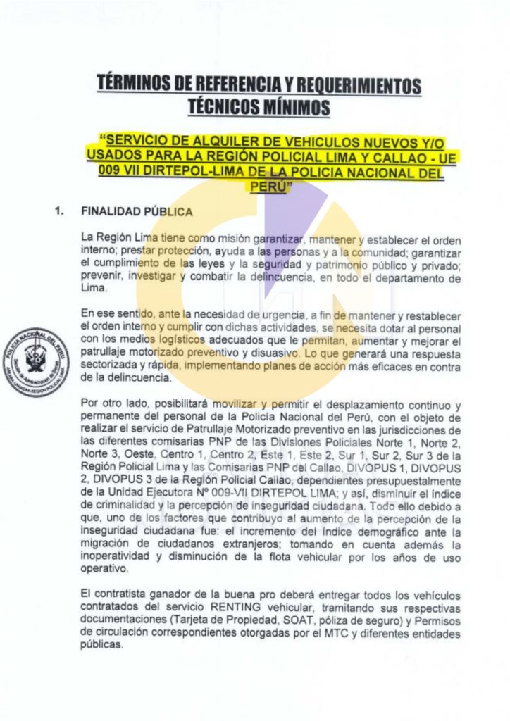 El equipo Multiplataforma de Latina Noticias tuvo acceso a documentos, que hoy hace públicos, que revelan las gestiones que realizó la PNP desde inicios del año pasado para dotar a Lima y Callao con 500 autos patrulleros, y el desesperado movimiento para rentar vehículos usados con hasta 300.000 km de uso; un kilometraje que iguala casi al tiempo de vida de un auto.