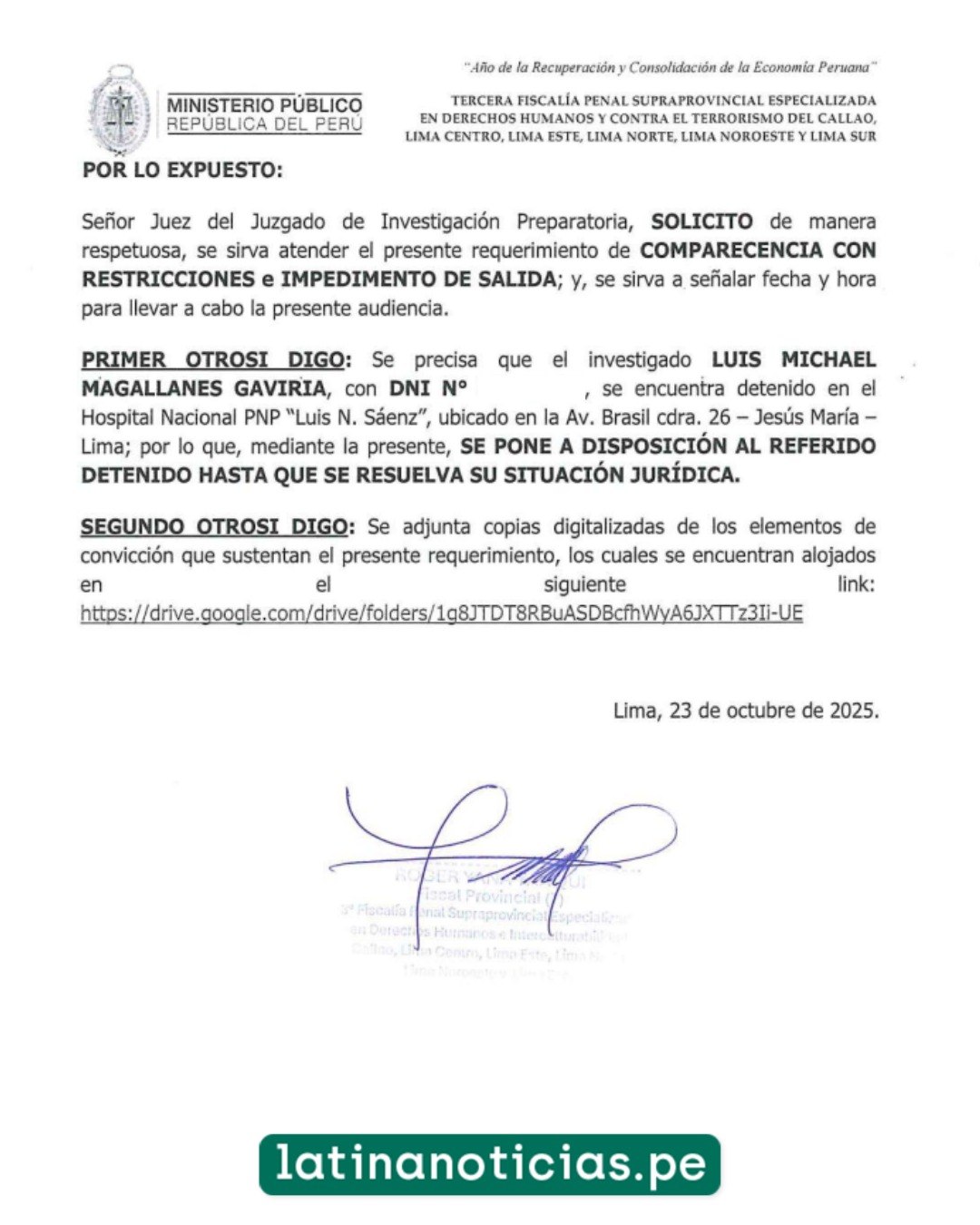 Como se recuerda, la semana pasada el Poder Judicial (PJ) aplicó detención preliminar por siete días contra Luis Magallanes. No obstante, el policía no pisó ningún penal, pues permaneció en calidad de detenido en el Hospital de la Policía, hasta donde llegó para recibir atención por los golpes que recibió durante la jornada de protestas.