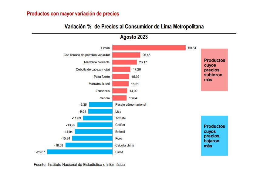 La inflación en agostó alcanzó 5.58 % en los últimos 12 meses, según el informe técnico de variación de los indicadores de precio en la economía del Instituto Nacional de Estadística e Informática (Inei). Pese a que los datos inflacionarios se mantienen a la baja, los precios de los productos de primera necesidad continúan elevados y uno de ellos es el limón, que tiene un significativo elevado costo al 69.8 %.