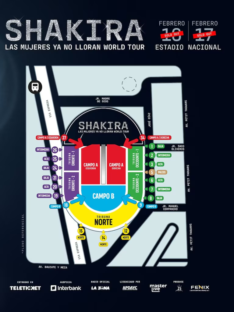 En esta ocasión las entradas para el concierto de Shakira NO SON NOMINADAS. Sin embargo, se advierte a los seguidores que eviten comprar boletos a revendedores, tanto en redes sociales como en los alrededores del recinto, ya que podrían ser falsos.