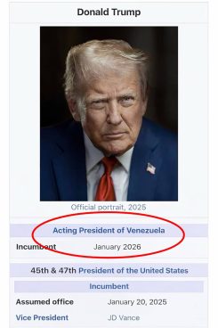 En medio del debate internacional que ha provocado la captura del líder chavista Nicolás Maduro por el ejercito norteamericano, el mandatario de Estados Unidos Donald Trump sorprendió al publicar una imagen en la que se presenta como ‘presidente interino de Venezuela‘.