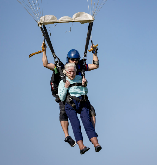 Mujer de 104 años salta en paracaídas y rompe récord guinness