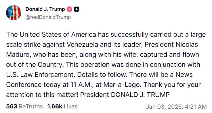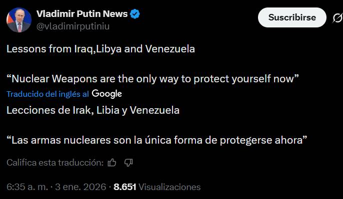 Durante la madrugada de este sábado 3 de enero, un ataque masivo sobre Caracas y otras localidades de Venezuela terminó con la captura de Nicolás Maduro y de su primera dama. Esto fue confirmado por el presidente de Estados Unidos, Donald Trump, y ratificado por la vicepresidenta venezolana, Delcy Rodríguez, quien señaló que desconoce el paradero del líder chavista.