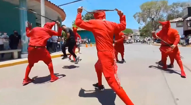 Según la tradición, con sus latigazos en medio de la Semana Santa, estos "diablos" limpian los pecados de los castigados.