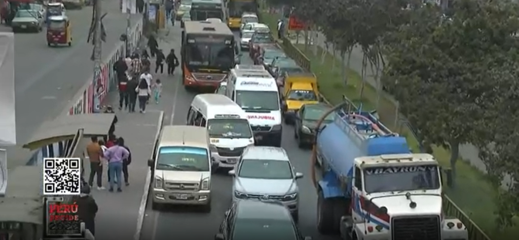 Una fuerte congestión vehicular viene atrasando el desplazamiento de la ciudadanía que acude este domingo a sus centros de votación. También, producto de este caos, una ambulancia fue imposibilitada de avanzar, incluso una combi obstruyó su paso.