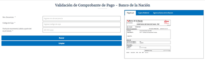 - Paso 1: Lo primero que debes hacer es pagar 17 soles en el Banco de la Nación a través de la plataforma págalo.pe o de forma presencial. Recuerda que en ambos casos obtendrás un voucher con datos, el cual deberás registrar posteriormente en la página.