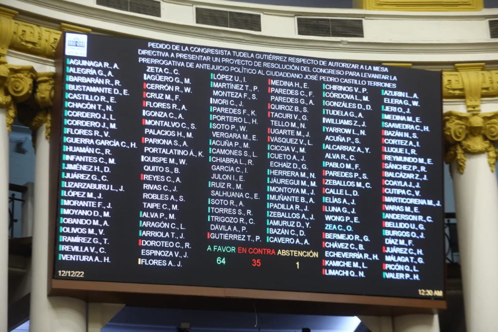 El Pleno del Congreso de la República aprobó la autorización a la Mesa Directiva para que esta presente un proyecto con el fin de que se levante la prerrogativa de antejuicio político contra Pedro Castillo. La Fiscalía abrió una investigación preliminar contra el expresidente por los presuntos delitos de rebelión y sedición.