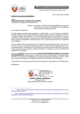 “En esa medida, se tiene conocimiento, que con fechas 26 de diciembre de 2025 y 06 de enero del año en curso, el citado alto funcionario público, se habría reunido irregularmente con un empresario privado, transgrediendo los protocolos y horarios propios de la alta función que ejerce; siendo que dicho grave proceder, amerita sea tratado con urgencia en el seno del Pleno del Congreso de la República“, se lee en el documento remitido este lunes 19 de enero.