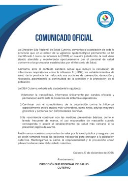 La confirmación del primer caso en Cutervo fue dado a conocer por la Disa, a través de un comunicado, en el que señalan que los establecimientos de Cutervo han reforzado sus acciones prevención, detección y respuesta ante este tipo de influenza.