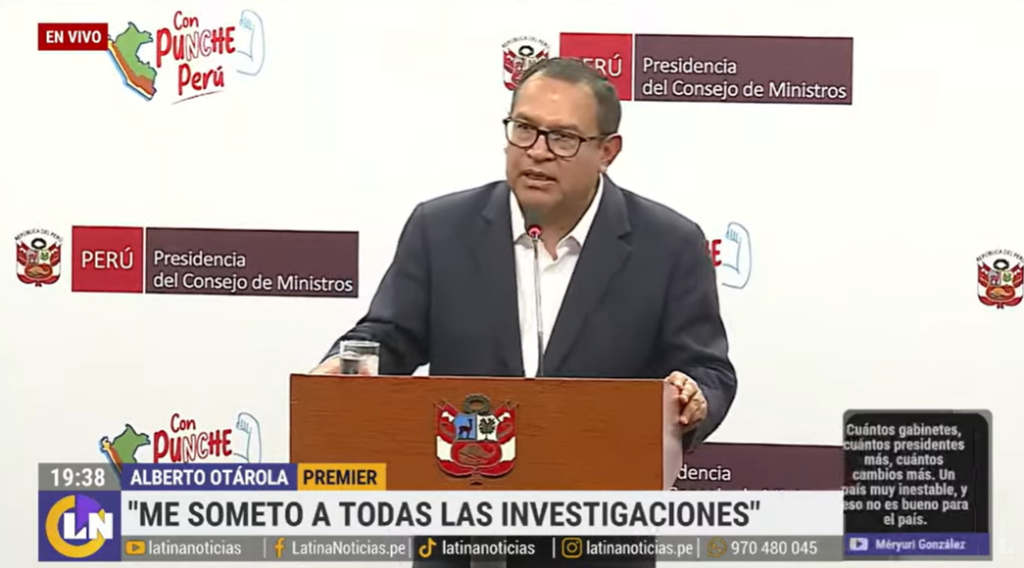Pinedo señaló en dos medios de comunicación que dicho audio es, en realidad, un video, fue editado y es de 2021, cuando Otárola no era funcionario público. “Reconozco mi voz, reconozco la voz del señor Alberto Otárola, pero lo que no puedo aceptar es que digan que ese audio es actual”, dijo.