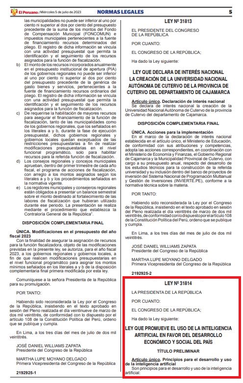 “Con respecto del Perú, en ese sentido, cuenta con normas de avanzada porque hasta donde yo sé en otro país de la región latinoamericana no se ha dado una ley en la cual se establezca de manera clara que hay que regular la inteligencia artificial y no para asfixiarla, sino para hacer que la inteligencia artificial tenga como centro a las personas humanas”, cuenta Cáceres.