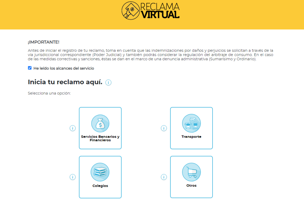 Idealmente, el usuario debe presentar primero su reclamo con el proveedor de bienes o servicios, a través del Libro de Reclamaciones virtual o físico que dispone. Si en un lapso de 15 días hábiles, te brinda una respuesta que no te satisface o se niegan a escucharte, podrás presentar tu reclamo ante Indecopi de manera virtual. Sigue estos pasos: