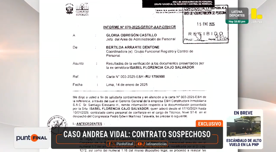 Punto Final obtuvo un documento en exclusiva y podría ser clave en la investigación y está relacionado a la joven creadora de contenido de la red Only Fans, Isabel Cajo. Termina colocando en una situación muy comprometedora a los funcionarios del Parlamento que revisaron su contratación en las diversas dependencias donde trabajó.
