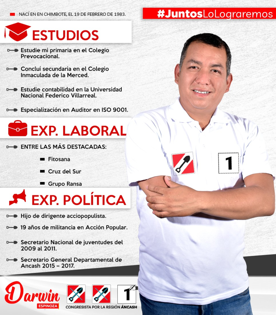 “Darwin Espinoza, como los demás congresistas, fueron elegidos por los militantes del partido de Áncash. Yo no elegí a los congresistas. En Acción Popular, en ese entonces, era un militante, un voto. Ellos elegían. Hemos respetado la voluntad de los militantes y yo he cumplido con la técnica como plancha presidencial”.
