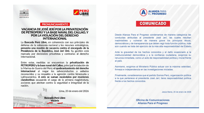 Comunicados de Perú Libre y Alianza por el Progreso.