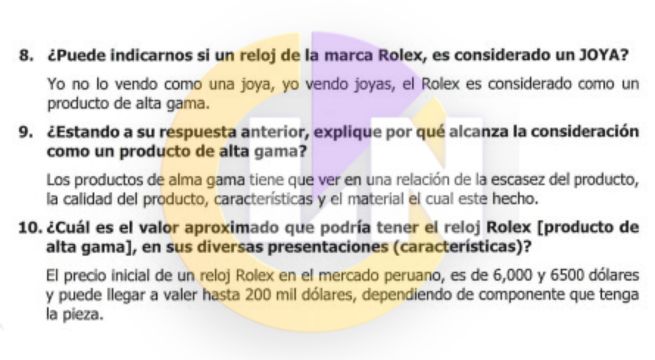 CASA BANCHERO NO CONSIDERA LOS RELOJES ‘ROLEX’ COMO JOYAS