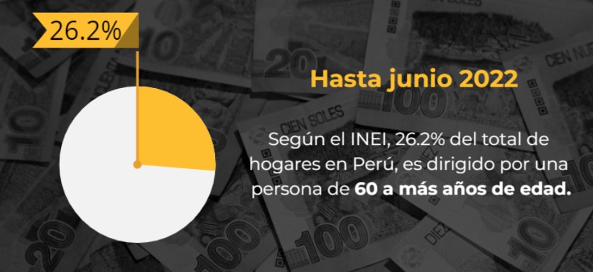 En muchos casos, los adultos mayores representan un sector de la población que depende de alguien para sobrevivir. Sin embargo, las cifras reflejan que esto no siempre es así. A junio de 2022, según el Instituto Nacional de Estadística e Informática (INEI), uno de cada cuatro de hogares en Perú (26,2%) es dirigido por una persona de 60 a más años.