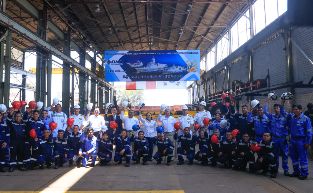 Tras ello, la jefa de Estado se dirigió al Callao para ser parte de la ceremonia de corte de la primera plancha de los proyectos de construcción naval en los servicios industriales de la Marina. Después estuvo en la actividad de la puesta de quilla de la fragata Multirrol, patrullera oceánica tipo OPV y buques auxiliares logísticos.