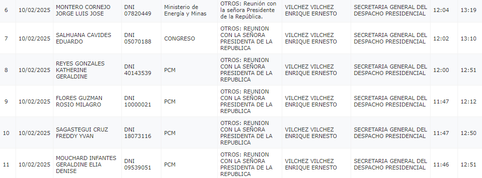 Durante este lunes 10 de febrero, la mandataria Dina Boluarte tuvo actividades. Así se pudo evidenciar en la cuenta oficial de la Presidencia de la República en X (antes Twitter) y en el portal de Transparencia. En Latina Noticias repasa todo lo que se conoce sobre la jornada de la jefa de Estado.