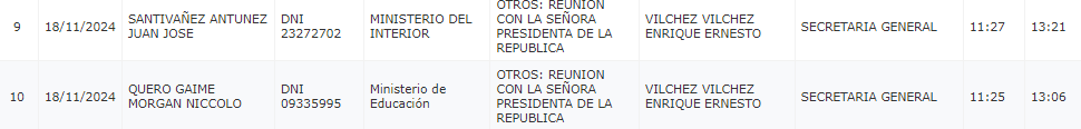 El titular de la cartera de Interior, Juan José Santiváñez, también sostuvo una reunión con Boluarte Zegarra entre las 11:27 de la mañana a 1:21 de la tarde.