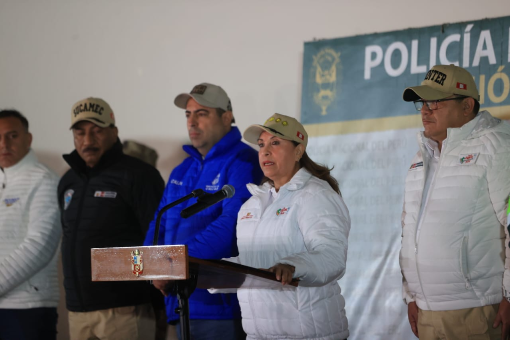 Según la cuenta oficial de Presidencia, la mandataria participó del operativo Amanecer Seguro, que se realiza a nivel nacional. También estuvo el ministro del interior, Juan Santiváñez.