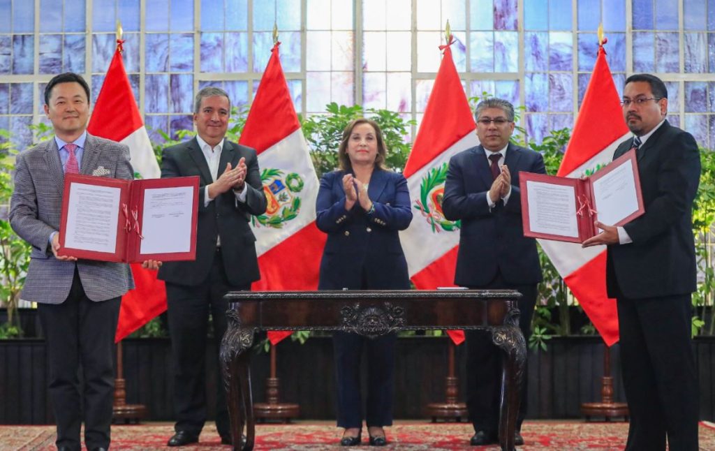 Luego de estar con sus ministros, Boluarte Zegarra estuvo en la firma de la adenda del proyecto Aeropuerto Internacional de Chinchero. Allí se le observa junto al ministro de Transportes, Raúl Pérez Reyes, y el gobernador regional del Cusco, Wegner Salcedo.