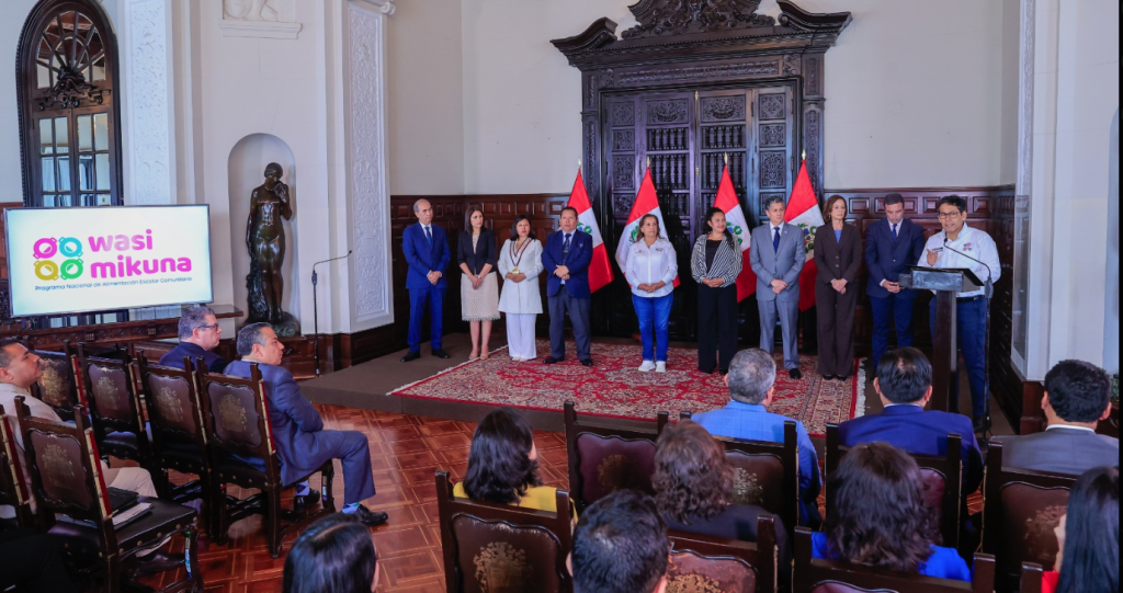 Luego, la jefa de Estado participó del anuncio oficial del nuevo programa de alimentación escolar Wasi Mikuna, que reemplaza a Qali Warma luego de los últimos escándalos de distribución de conservas de alimentos en mal estado de la empresa Frigoinca tal como se reveló en “Punto Final”.