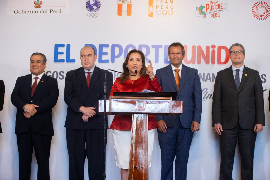 La presidenta y el titular de la Presidencia del Consejo de Ministros, Gustavo Adrianzén, encabezaron la ceremonia de firma del contrato. También estuvo el ministro de Educación, Morgan Quero; el alcalde de la MML, Rafael López Aliaga; el presidente de Panam Sports, Neven Ilic; el presidente del Instituto Peruano del Deporte (IPD), Guido Flores Marchan; y el presidente del Comité Olímpico, Renzo Manyari.