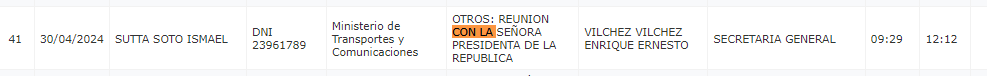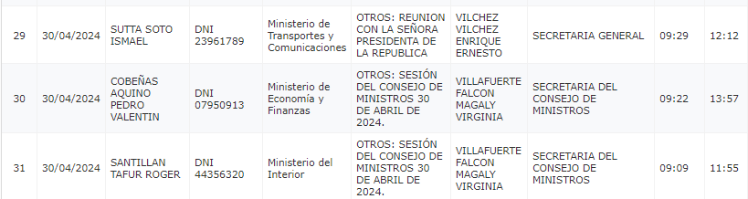 La jornada comenzó con la presidencia de Dina Boluarte en la sesión del Consejo de Ministros, la cual tuvo lugar en el Palacio de Gobierno a partir de las 10:15 de la mañana. En esta importante reunión, la presidenta estuvo acompañada por miembros de su gabinete ministerial, donde también tuvo reunión con Ismael Sutta Sotto, nuevo viceministro de Transportes a las 9:29 a.m.