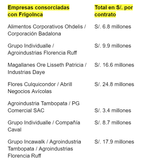 El millonario negocio de Frigoinca: estas son las empresas con las que se asoció para obtener 30 contratos públicos por 88 millones de soles