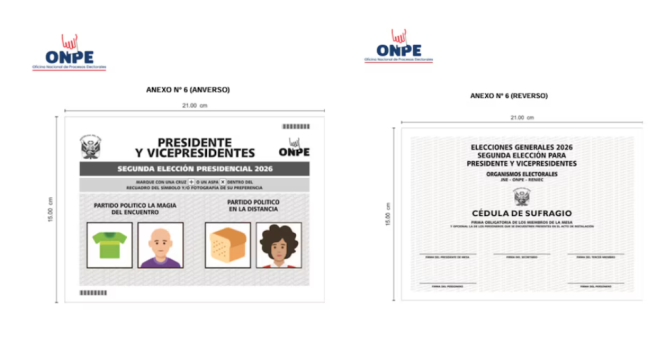 Se publicó el diseño oficial de las cédulas para las Elecciones 2026. / Fuente: ONPE.