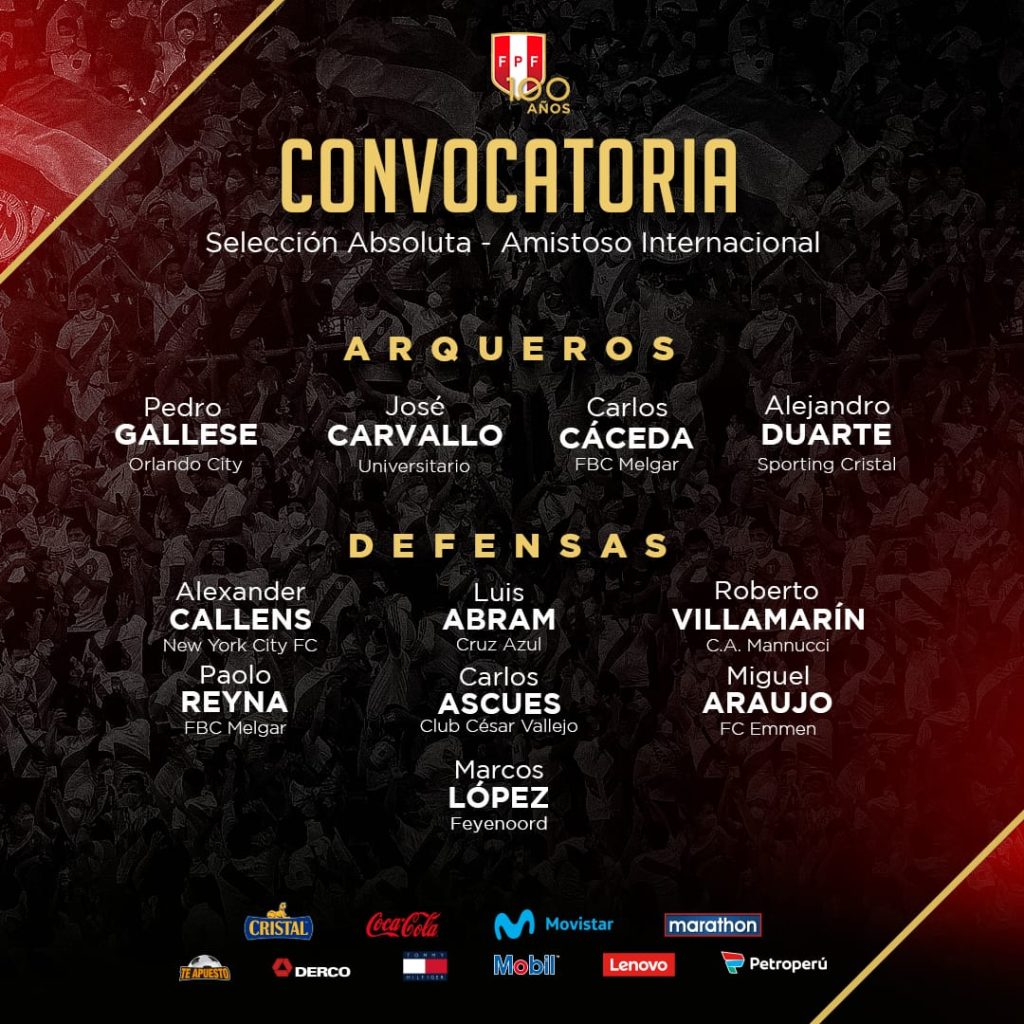 Se hizo oficial la lista para los amistosos que tendrá la selección peruana este mes de noviembre frente a Bolivia y Paraguay. El DT peruano, Juan Reynoso, convocó a 27 jugadores entre medio local y peruanos en el extranjero.