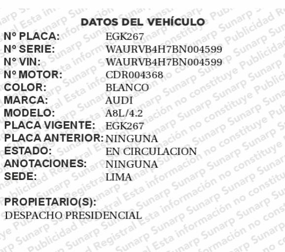 Cabe recordar que Punto Final reveló imágenes inéditas de otro vehículo presidencial que cobra importancia para esclarecer la trama del misterioso viaje del ‘cofre’ en Asia a fines de febrero de este año. Se trata de un Audi color blanco de placa EGK267, con el que se habría dado el relevo para el regreso de Dina Boluarte a Palacio de Gobierno.
